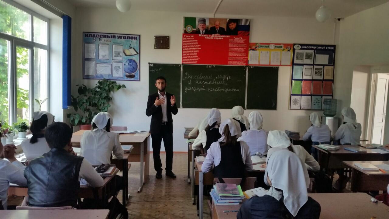 В классах старшего и среднего звена прошли открытые тематические классные часы «Тернистый путь к становлению Республики», «У истоков мира в Чечне», «Чечня-моя гордость и честь!» В своем вступительном слове на открытом классном часе классный руководитель 10 а класса Берсанова П.Ю. подчеркнула: «Как известно, Указ об объявлении 6 сентября Днем гражданского согласия и единения был подписан Ахмат-Хаджи Кадыровым в 2002 году «в целях консолидации граждан Чеченской Республики во имя торжества идеи мирной жизни и созидательного труда, развития толерантности и гуманизма». Ахмат-Хаджи Кадыров стоял у истоков становления новой, мирной Чеченской Республики. Учреждение нового праздника в республике - Дня гражданского согласия и единения-яркое тому подтверждение».