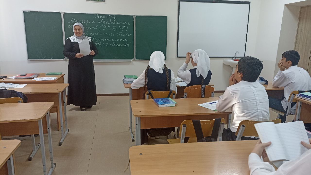 24.11.2023Отделом в Шалинском районе УФСБ России по Чеченской Республике совместно с МУ «Отдел образования Шалинского муниципального района Чеченской Республики» проведено профилактическое мероприятие в МБОУ СОШ №3 г.Шали на тему: «История образования спецслужб (ФСБ РФ), роль и значение в обеспечении безопасности государства и общества.».