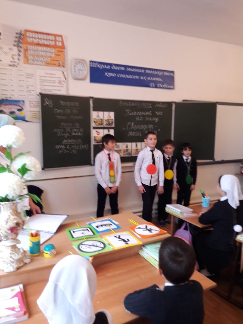 19.01.2018Во исполнение Протокольных поручений Главы и Правительства ЧР, с целью профилактики детского дорожно-транспортного травматизма в МБОУ "СОШ №3 г.Шали" проводятся открытые классные часы, беседы. Классный час "Сфетофор - наш дтуг" проведен 18 января в 4б классе.